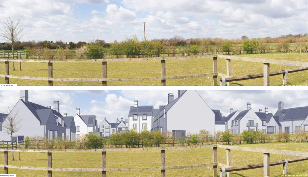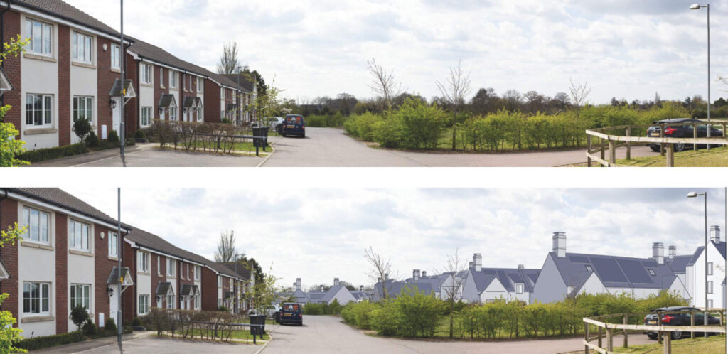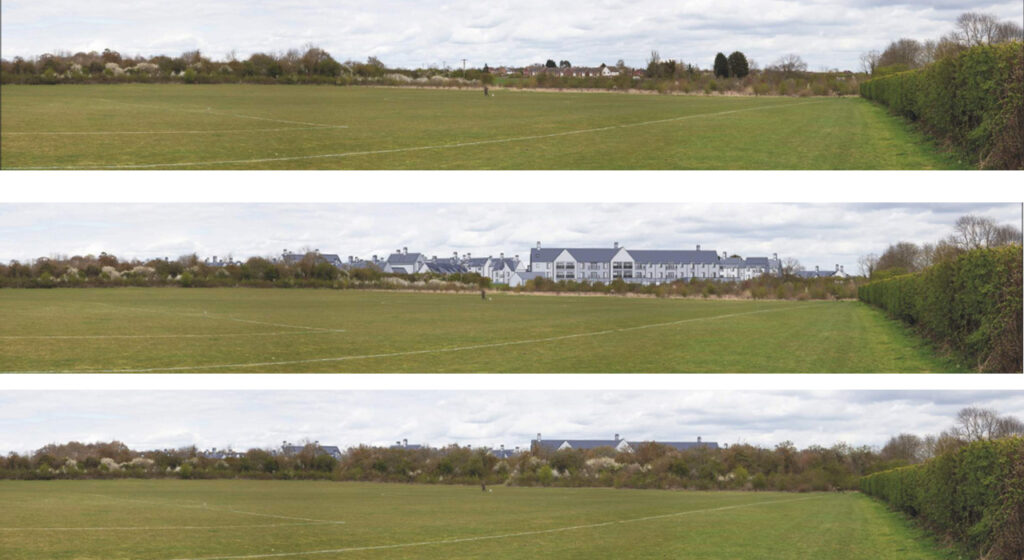 Two views from the east at the Rec extension and from the west end at Normandy Close all from their Application Visuals (today, one year after completion and 15 years after…)