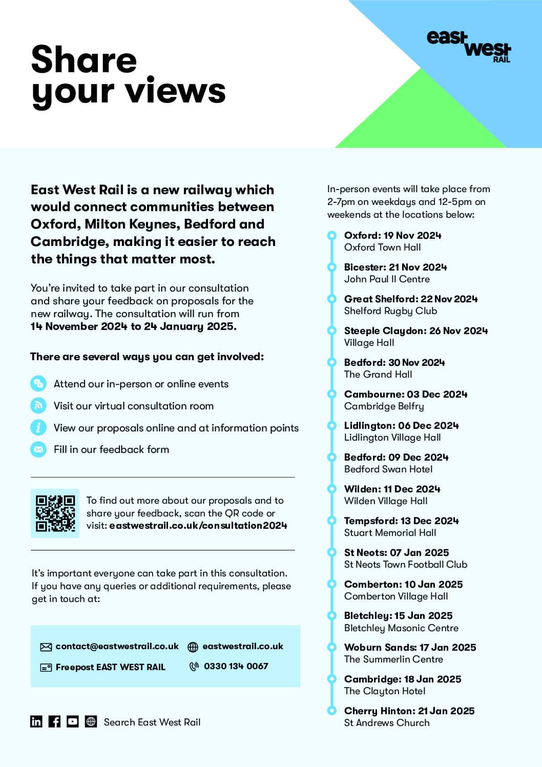 EWR_Promotional-Poster_24.10.24 In-person events are scheduled on weekdays from 2–7 PM and weekends from 12–5 PM at the venues listed on the poster. Join for the Comberton consultation on Friday, 10th […]